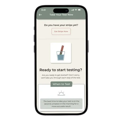 Gebruik een strip door deze 1 minuut in ochtend urine te plaatsen.